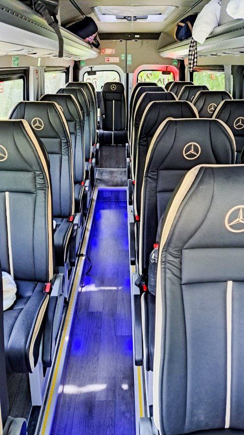 מיניבוסים בעלי 10 עד 23 מקומות ישיבה העומדים בתקני בטיחות מחמירים, כלי רכב חדישים ומפוארים, מתאפיינים בנוחות נסיעה ומרחב אישי, חיבורי USB אישיים לטעינת מחשבים ניידים וטלפונים ניידים, כל כלי הרכב ממוזגים ואסטטיים, מרווחים ובעלי יכולת נשיאת תיקים אישיים ומזוודות, תאורת לילה אישית לכל נוסע, חיבור B.T חיבור USB להשמעת מוסיקה לפי בחירת הלקוח. חוויית נסיעה מושלמת ונינוחה.